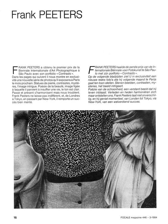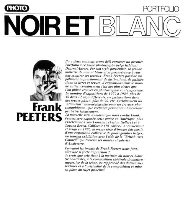 Portfolios & photos of Frank Peeters have been published in several hundred art & photo magazine, in photographic and art books, worldwide.